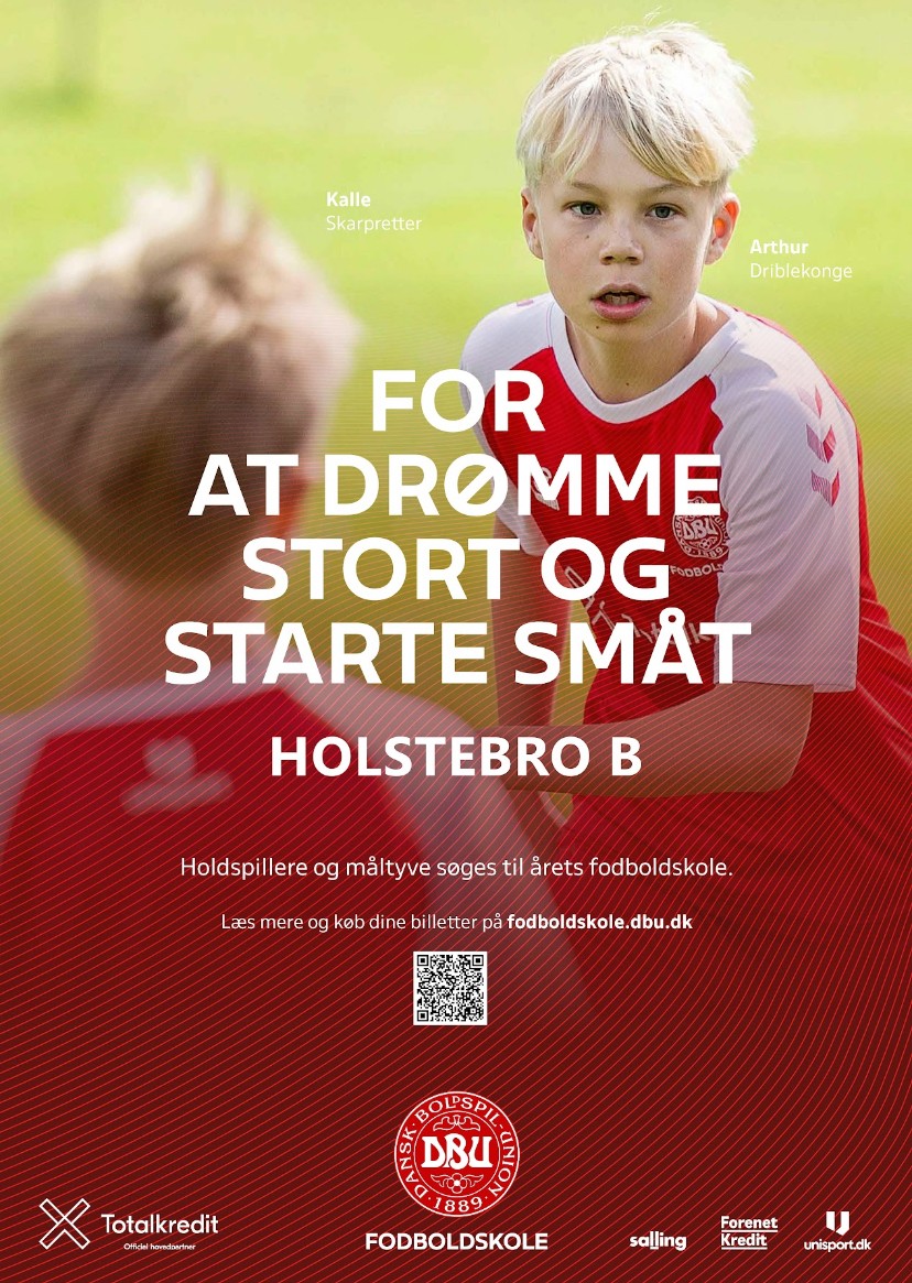 Hos Holstebro Boldklub inviterer vi til DBU Fodboldskole i uge 27, hvor en hel uge fyldt med fodboldglæde, venskab og magiske øjeblikke venter!